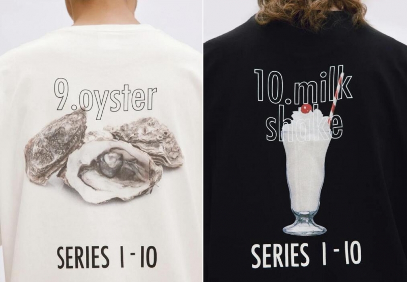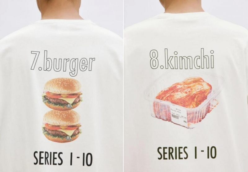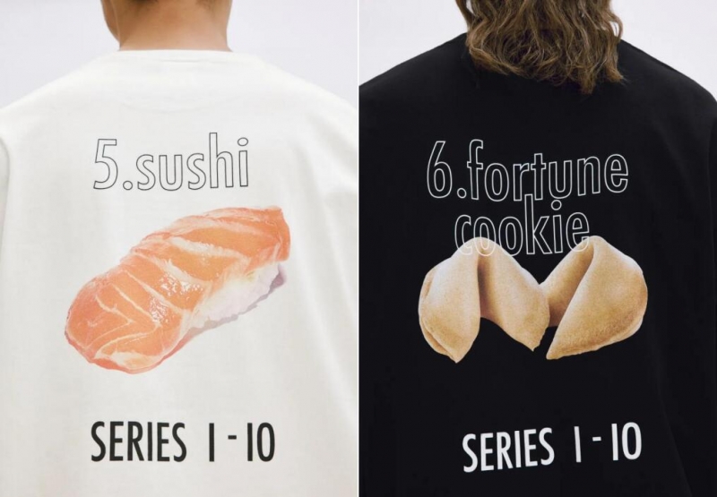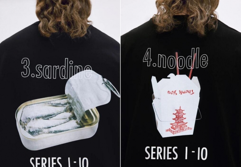 今年8月,几乎不做联名且及经常从多位面视角观察青年文化的CROQUIS(速写),宣布与刘亚仁及其艺术工作室Studio Concrete,以复刻联名的方式将SERIES 1 TO 10企划的第三系列「GROCERY」(食物系列)引入国内。酸黄瓜、西兰花、沙丁鱼罐头、炒面、寿司、幸运饼干、汉堡、泡菜、生蚝和奶昔,CROQUIS(速写)与Studio Concrete共同打造了一系列定番形态的Tee与帽衫,其中帽衫还是韩国并未发售的独占款。作为当年上架就Sold Out的爆款,如今终于有机会原价入手。